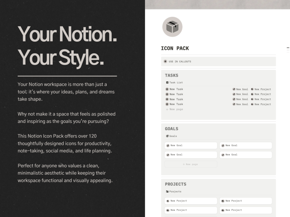 Upgrade your Notion with My Minimalist Beige Icon Pack — a custom icon pack designed for those who want simplicity with style.