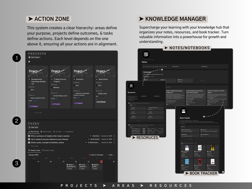 ☑︎ Weekly PARA Review: Conduct a structured weekly review to declutter, focus, and prepare for the week ahead—ensuring you stay on track and ready to take action.